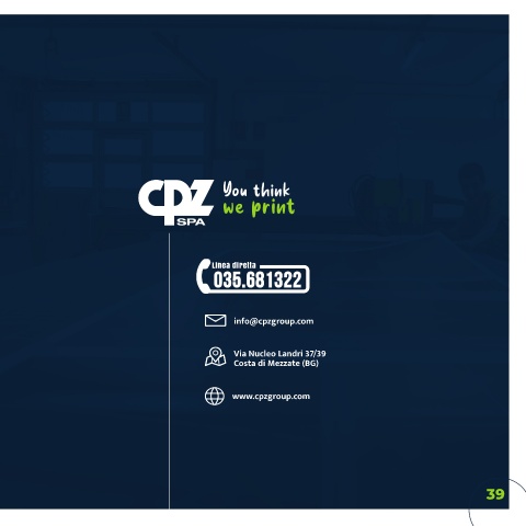 Linea diretta 035.681322 035.681322 info@cpzgroup.com Via Nucleo Landri 37/39 Costa di Mezzate (BG) www.cpzgroup.com 39